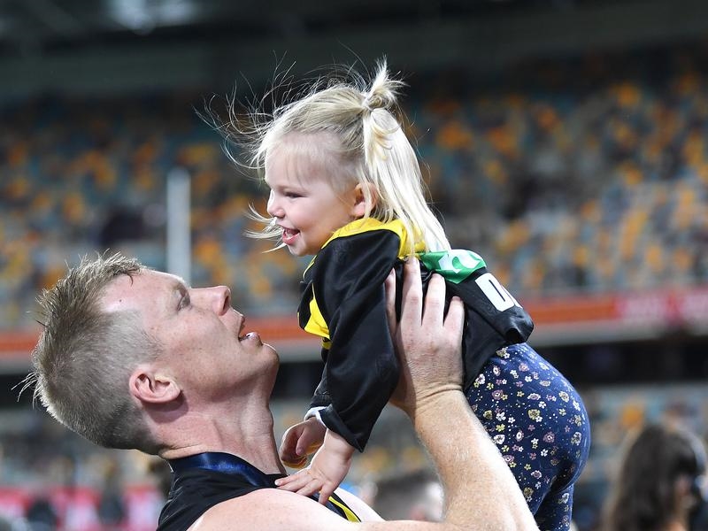 “I haven’t seen my family for 12 weeks which was bloody hard when you’ve got a one-year-old daughter,” Riewoldt said.