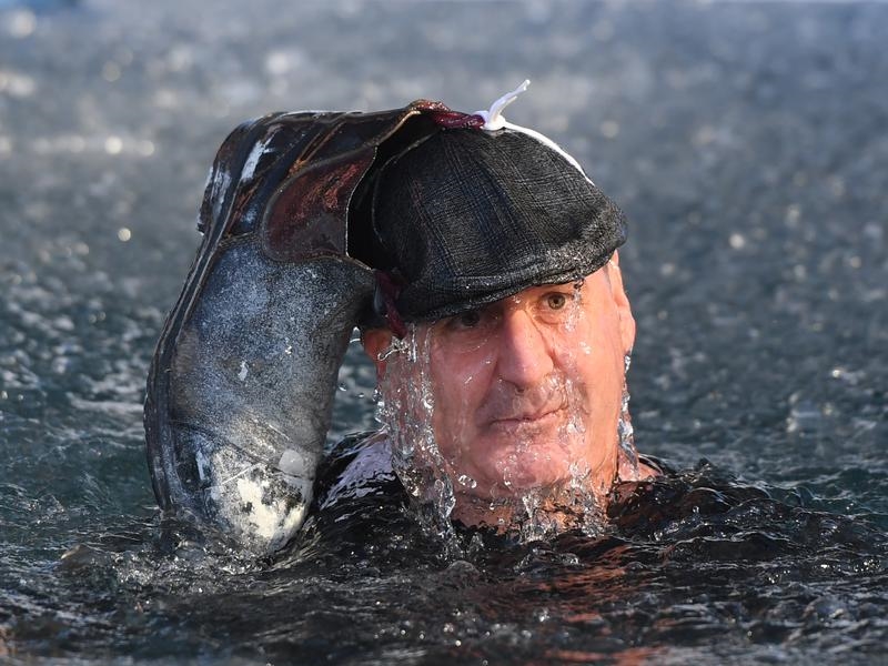 Swinton, a career firefighter, was diagnosed with MND in January and was on hand to see Buckley slide into the icy water wearing his fireman’s helmet.