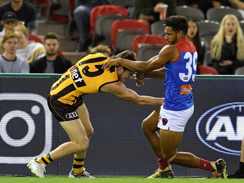 Christian scrutinised video of the incident late in Melbourne’s AFLX grand final on Friday night against Hawthorn at Etihad Stadium.