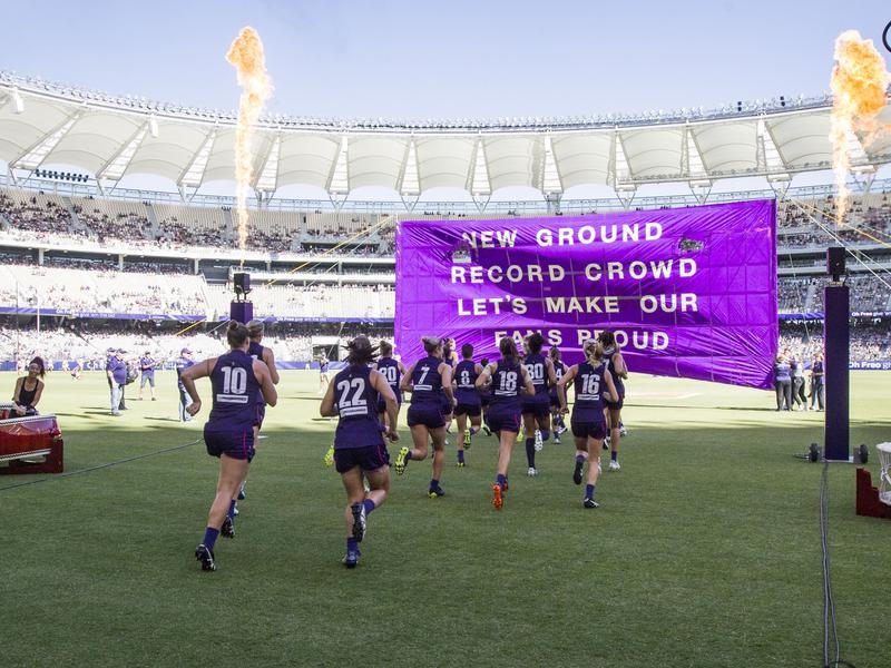 Players and coaches from both sides paid tribute to AFLW fans after a record-breaking crowd turned out to watch Fremantle’s clash with Collingwood at Perth’s Optus Stadium.
