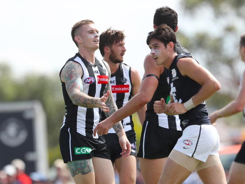Brodie Grundy was outstanding in the ruck and key defender Darcy Moore dominated at centre half-back on Charlie Curnow.