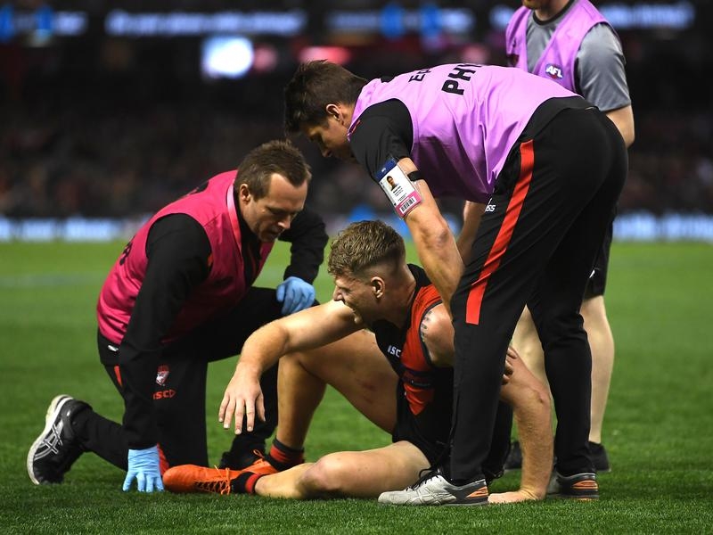 Essendon’s delight at their stunning last-minute win over GWS has been tempered by the loss of No.1 ruckman Tom Bellchambers, who will be sidelined for six weeks with a calf injury.