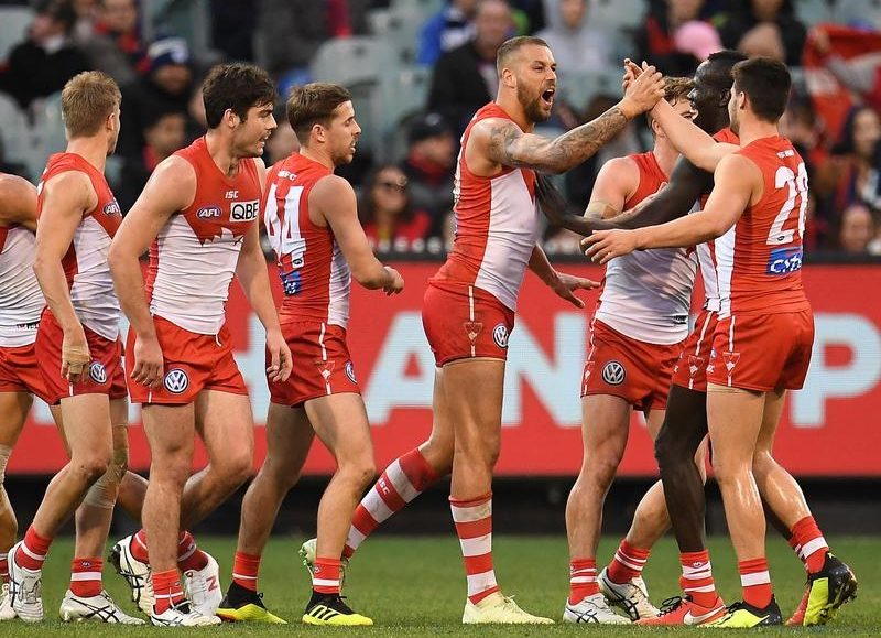 Reduced to two men on the bench after Sunday’s first quarter, the Swans showed tremendous resilience to regroup and hold off a late Melbourne surge for a 13.9 (87) to 10.18 (78) victory.