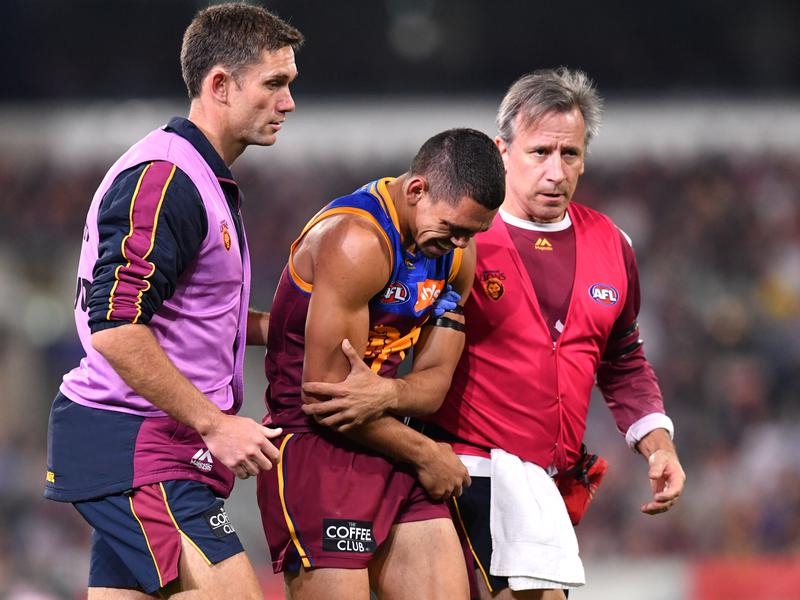 He earned kudos for his gutsy decision to get back on the field, kicking a goal that helped the Lions grab the first-term lead after the Giants’ whirlwind four-goal start despite appearing in great discomfort.