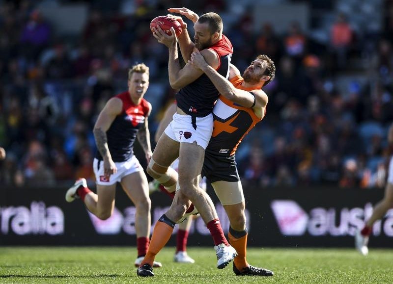 Mumford will come under scrutiny from the match review panel over two separate incidents in the Giants’ 14.13 (97)-10.2 (62) victory over Melbourne in Canberra on Saturday.