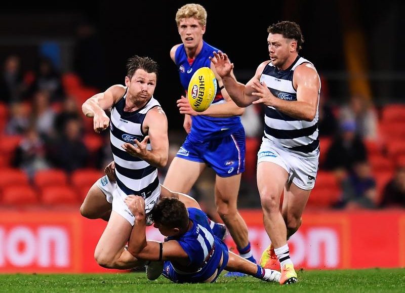 The mop-haired No.32 kicked a second six minutes later as the Cats began to steadily eat away at the Bulldogs’ advantage.