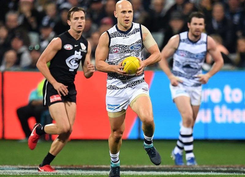 Skipper Joel Selwood (20 disposals) struggled to shake an Ed Curnow tag but Patrick Dangerfield (29), Mitch Duncan (27) and Ablett (25) were prominent.