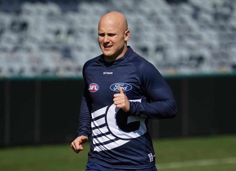 Wednesday’s hitout against the Roos was initially scheduled to be held at Deakin University but was moved behind closed doors at GMHBA Stadium.