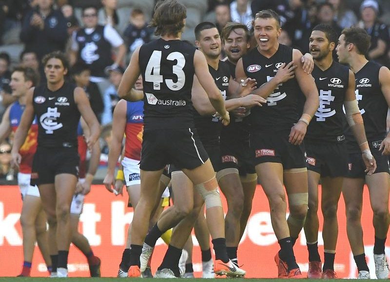 Carlton have climbed off the canvas in David Teague’s first AFL game in charge, coming from behind to defeat Brisbane by 15 points at Marvel Stadium.
