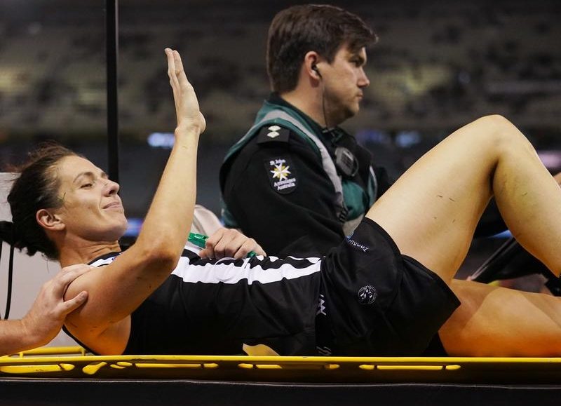 The Magpies’ defender and Diamonds netballer twisted her left knee and slumped to the turf in the back pocket during on Friday evening’s third quarter at Marvel Stadium.