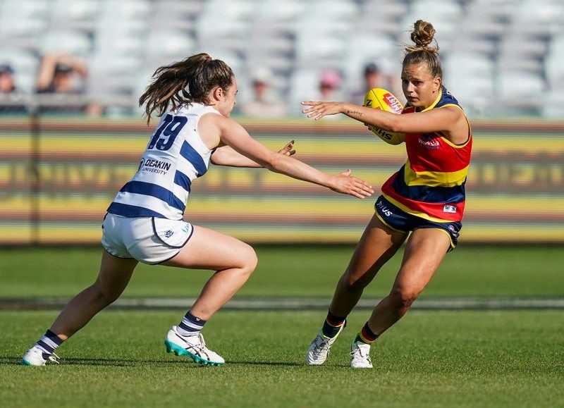 It was a controversial last minute as Geelong defender Maddy McMahon was penalised for deliberately running the ball over the Adelaide goalline.
