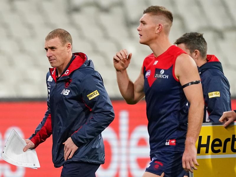 A questionable score review late in Sunday’s AFL four-point loss to Brisbane didn’t cost Melbourne coach Simon Goodwin’s team a chance to win, but it didn’t help either.