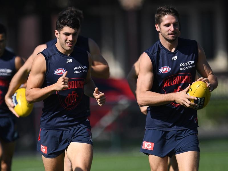 Co-captain Jack Viney was another welcome face at Melbourne training after missing the season to date with long-running foot issues.