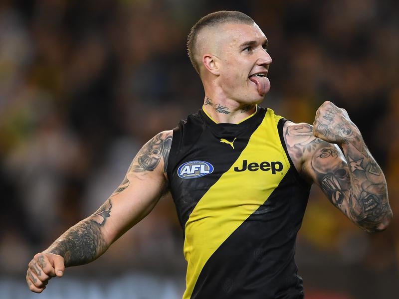 Milestone man Dustin Martin was gang-tackled, double-teamed, tagged and provoked but none of it was enough to stop him from stealing the stage as Richmond steamrolled Hawthorn in Thursday night’s AFL qualifying final.