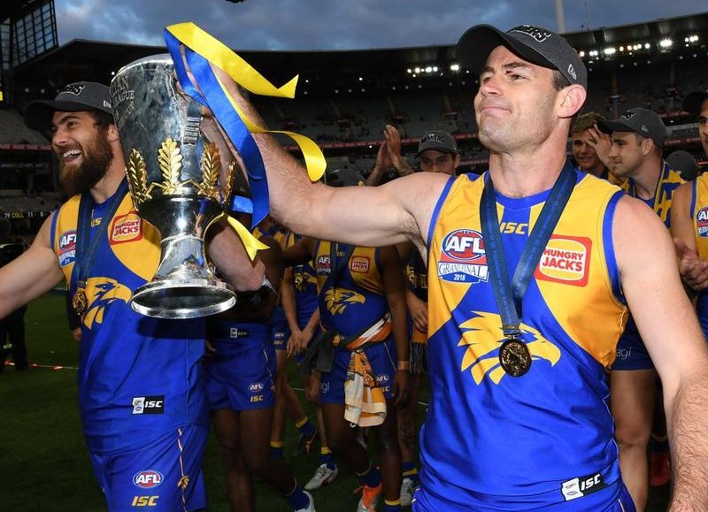 Captain Shannon Hurn was responsible for the most important piece of carry-on baggage, boarding the flight with the 2018 premiership cup tucked under his wing.