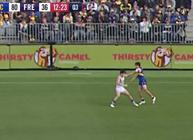 Ironically, it was West Coast’s Andrew Gaff on the receiving end of this brutal high bump from Port Adelaide backman Jonas. The hit received the most serious classification – intentional conduct, severe impact and high contact – and Jonas’ attempt to have the charge downgraded cost him any chance of a discount.