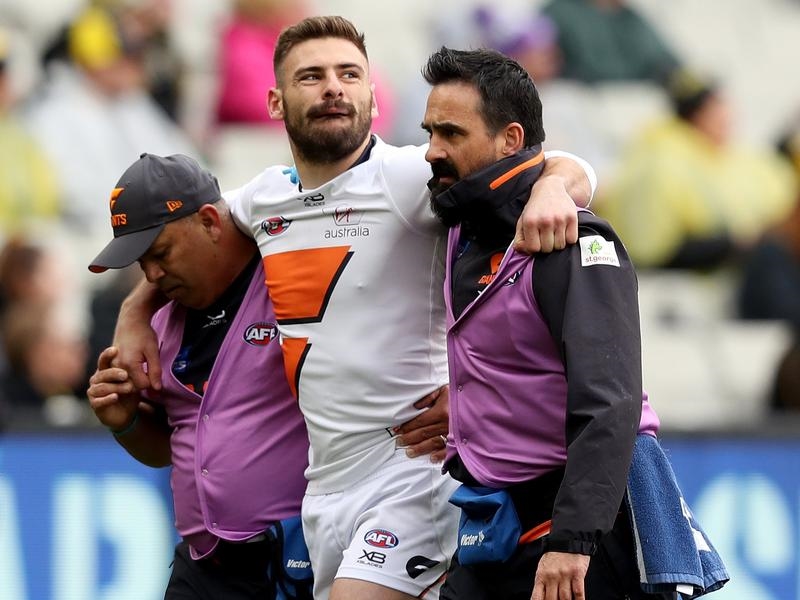 Coniglio did not last the opening five minutes of the MCG match before his heavily-strapped left knee gave away when he changed direction.