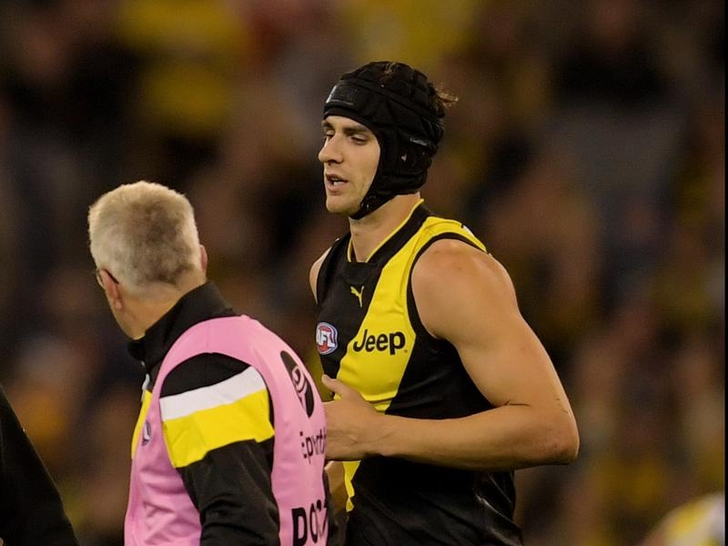 The Richmond ruck-forward is nursing a dislocated shoulder after Sunday’s VFL match against Collingwood at Punt Rd.
