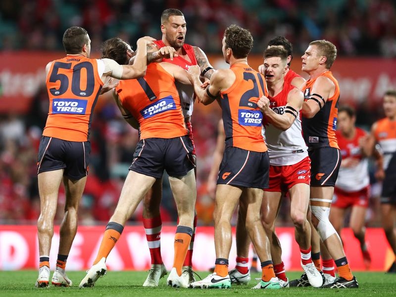 Greene was fined last year for collecting the Western Bulldogs’ Luke Dahlhaus in the face with his outstretched leg and the star forward employed the same tactic several times against the Swans.