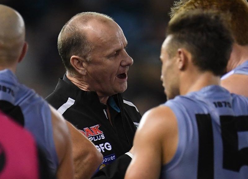 Wines was subjected to a Hinkley verbal spray, caught by television cameras, at quarter-time of Port’s AFL loss to Collingwood last Friday night.