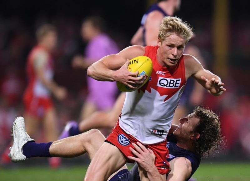 Sydney have suffered a major blow early in their AFL match against Geelong at the SCG, with Kieren Jack suffering a knee injury.