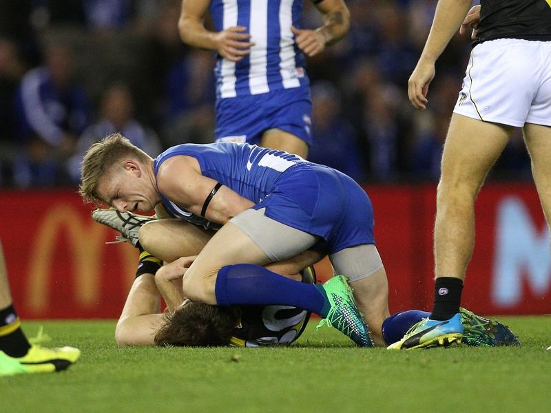 AFL match review officer Michael Christian offered the Kangaroos captain a one-match ban after he kneed Reece Conca in the head in Sunday’s loss to Richmond.