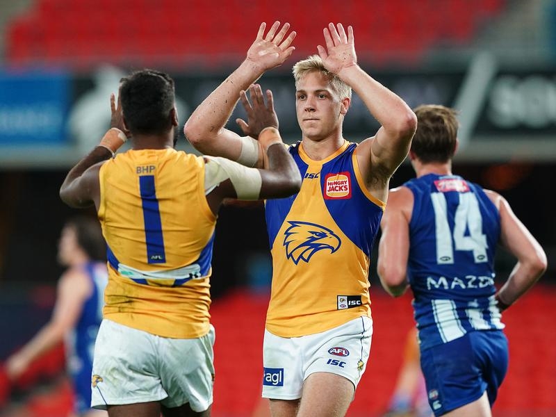 West Coast’s wretched run with injury continued as they ground out an uninspiring 15-point win over lowly North Melbourne that kept their AFL top-four hopes alive.