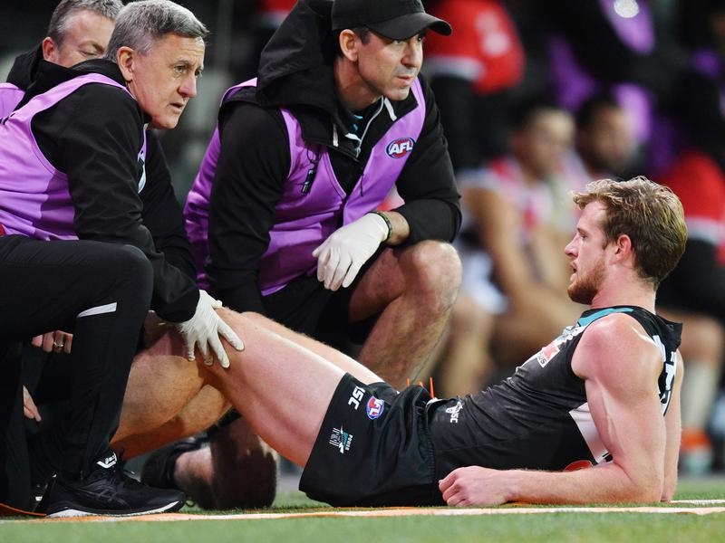 The 27-year-old hurt his left knee in a tackle in the third quarter of the Power’s win over St Kilda at Adelaide Oval on Saturday.
