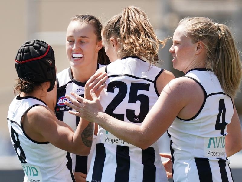 Collingwood forwards Jordan Membrey (two goals and 11 disposals), Aishling Sheridan (one goal and 14) and Jordyn Allen provided D’Arcy with sound support, while Stacey Livingstone (15 disposals) kept star Carlton forward Tayla Harris quiet.