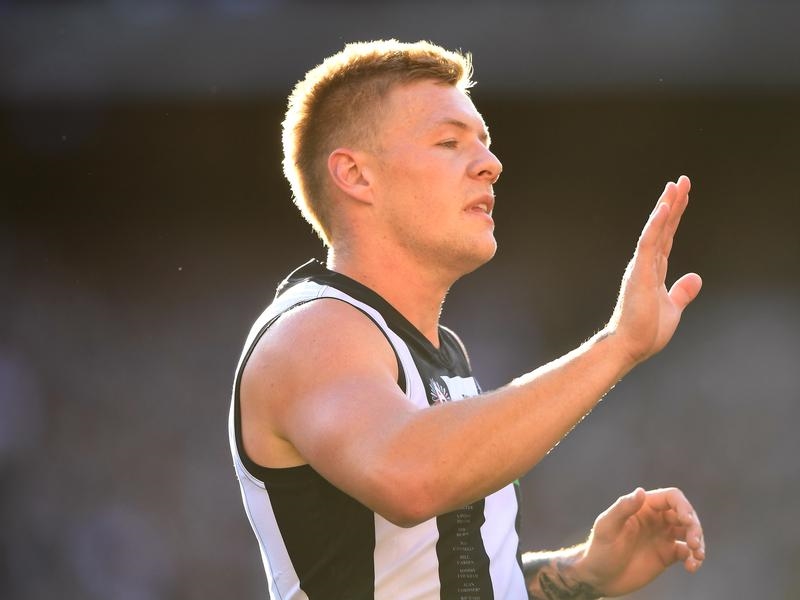 Collingwood stars Jordan De Goey and Darcy Moore will look to prove their fitness for Saturday’s AFL clash with Fremantle but midfielder Taylor Adams’ groin injury will keep him sidelined until after the Magpies’ mid-season bye.