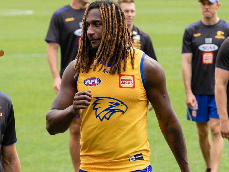 The 201cm Naitanui has recently progressed to kicking footballs and straight-line speed work at training.