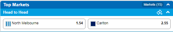 Tip: North Melbourne Kangaroos at $1.54