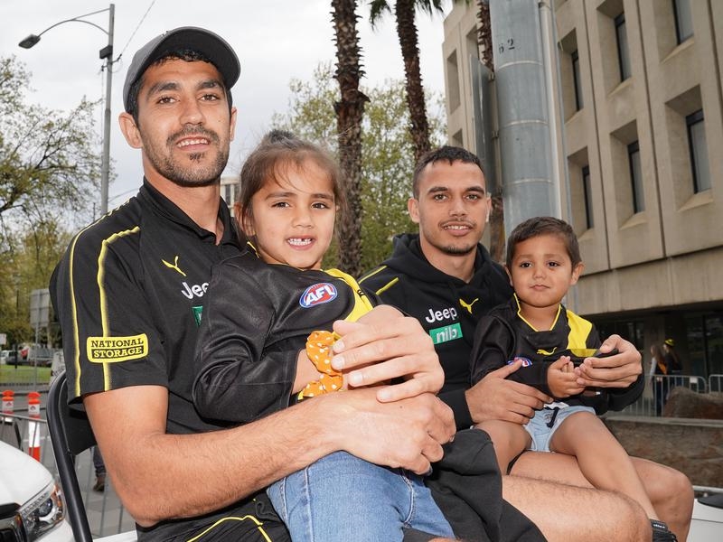 In the car behind were Shai Bolton and Daniel Rioli, on child-minding duties with Marlion, nine, and Latrell, eight.