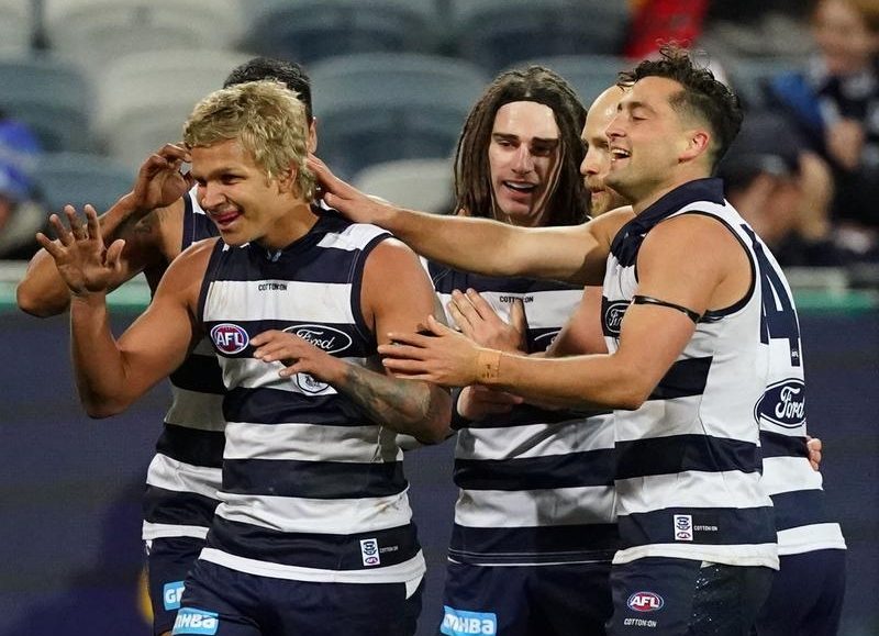 Ladder leaders Geelong are still a way short of their absolute best just a few weeks out from the AFL finals but there was a lot for coach Chris Scott to like in Saturday night’s 55-point win.