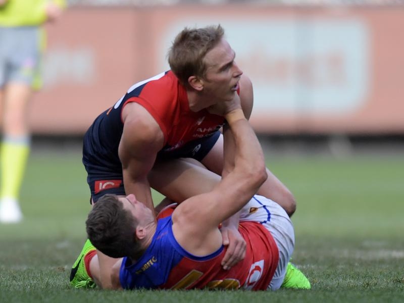 Melbourne veteran Bernie Vince escaped with a fine for his clumsy spoiling attempt that flattened Brisbane skipper Dayne Beams.