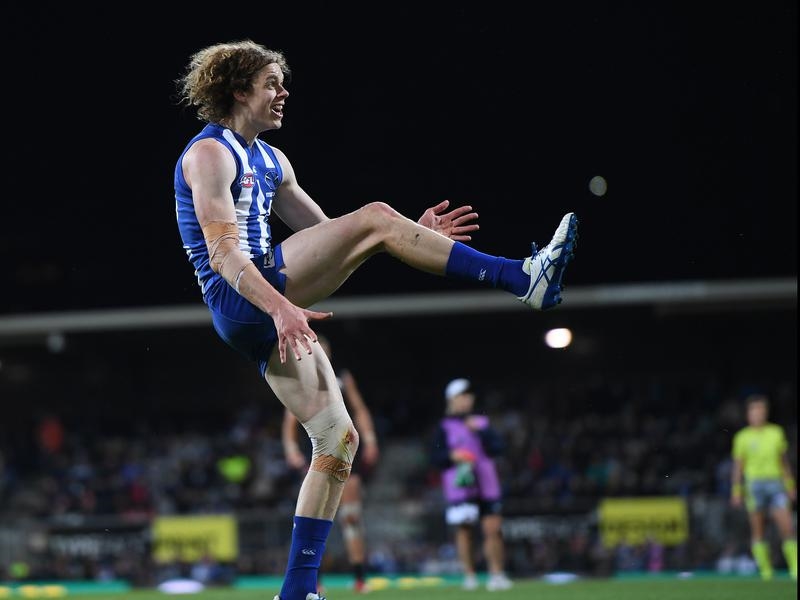 North Melbourne coach Brad Scott believes Ben Brown is becoming a “complete player” after the big man’s five goals at a wet and slippery Bellerive Oval.