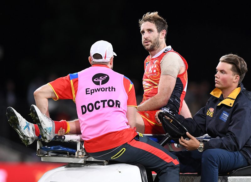 The 29-year-old was taken to hospital straight after the game and while Suns’ football manager Marcus Ashcroft said a prognosis won’t be available until after surgery, Barlow’s season is almost certainly finished.
