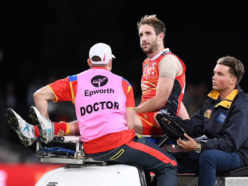 The 29-year-old was taken to hospital straight after the game and while Suns’ football manager Marcus Ashcroft said a prognosis won’t be available until after surgery, Barlow’s season is almost certainly finished.