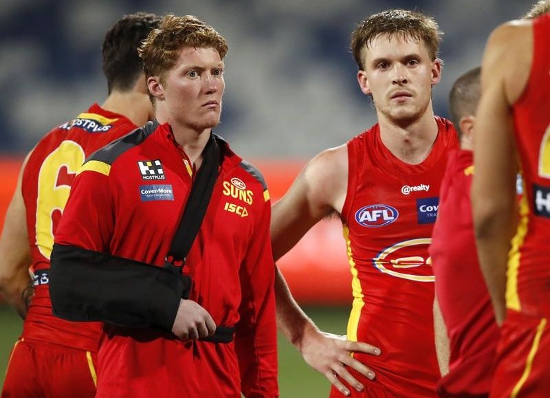 Gold Coast young gun Matt Rowell will have scans after he suffered a shoulder injury in the Suns’ AFL loss to Geelong at GMHBA Stadium.