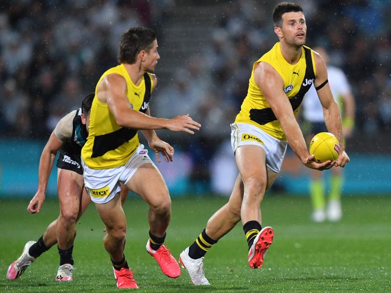 Richmond captain Trent Cotchin has been fined for tripping Port Adelaide’s Hamish Hartlett in Friday night’s gripping AFL preliminary final win.