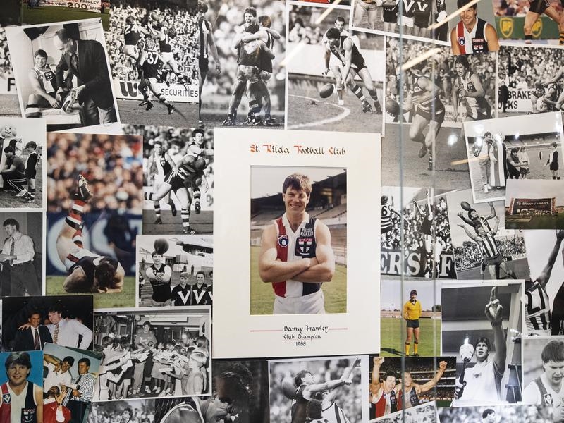 Inside the club’s foyer, photos of Frawley taken during his 240-game career were played on a continuous loop on the display screens dominating the room.