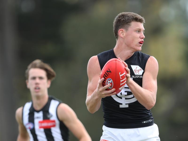 Carlton’s No.1 draft pick Sam Walsh has capped his strong AFL pre-season by nearly kicking the match winner against arch-rivals Collingwood.