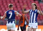 North Melbourne have upset GWS by 20 points in a low-scoring AFL scrap at Giants Stadium, where the visitors’ youngsters stood up in a thrilling final quarter. Curtis Taylor, Bailey …