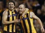 Jarryd Roughead has booted six goals for Hawthorn who have farewelled their retiring AFL champion in fine style with a 70-point smashing of hapless Gold Coast in a carnival atmosphere …