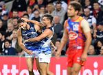 Geelong survived a massive scare from the tough tackling Gold Coast before running out 27-point winners at Metricon Stadium. The Suns trailed the AFL ladder-leading Cats by only two points …