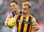 Luke Breust has bagged five goals and Chad Wingard introduced himself to Hawthorn fans with three majors in a scrappy 16-point win over North Melbourne at the MCG. The Hawks …