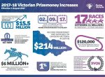 Racing Victoria has announced a $15.5 million increase in prize money for the 2017-18 season with a total of $214 million on offer. Prize money levels at Saturday city meetings …