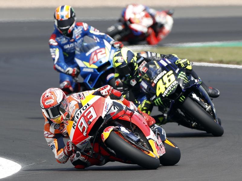 Suzuki’s Alex Rins has passed MotoGP world champion Marc Marquez at the final corner to win a thrilling British Grand Prix.