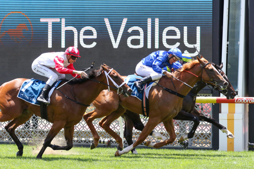 Ridden again by Damien Oliver, Amur ($3.40) scored a short-half-head win over the $2.90 PlayUp favourite Some People Callme with Meg’s Magic ($8) a half-length away third.
