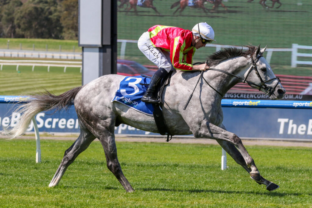 The Sandown win was Kingswood’s first in Australia, at his third start after two unplaced runs in winter for Maddie Raymond.